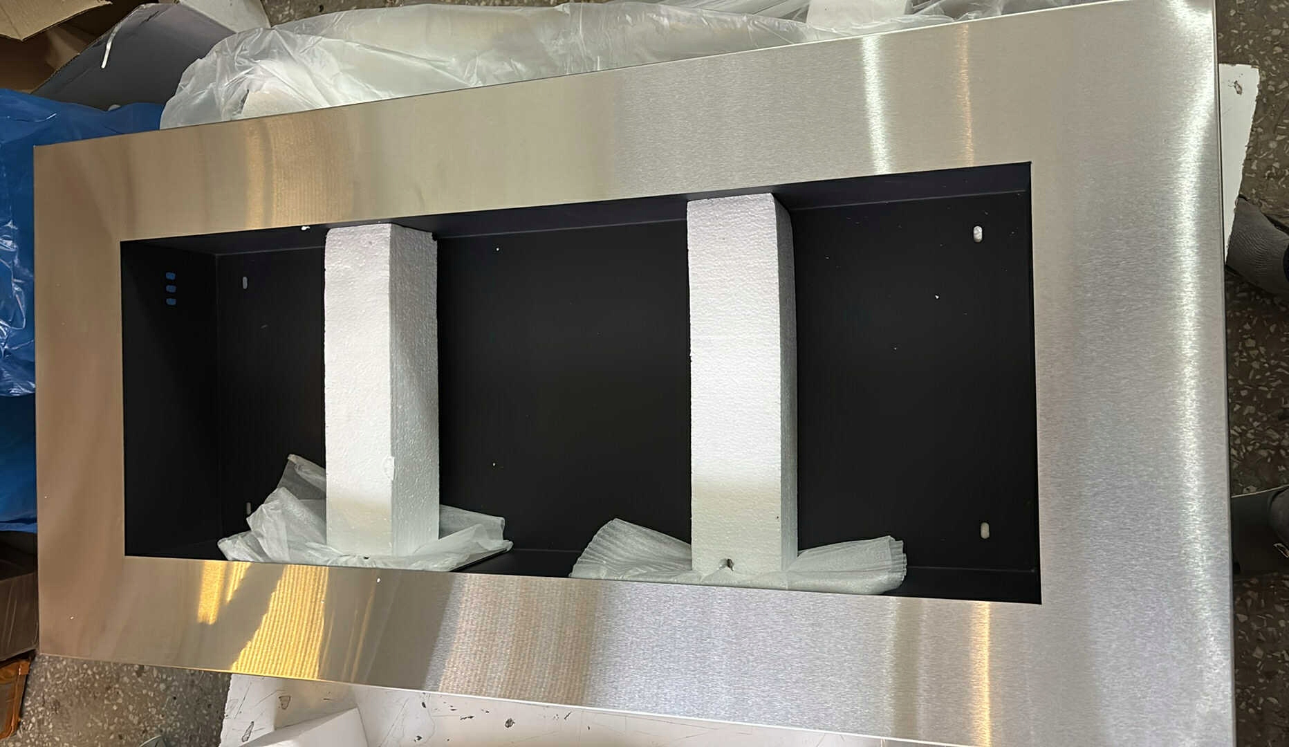 Biokominek wiszący na paliwo żelowe kominek na etalon 54x110x14 cm srebrny