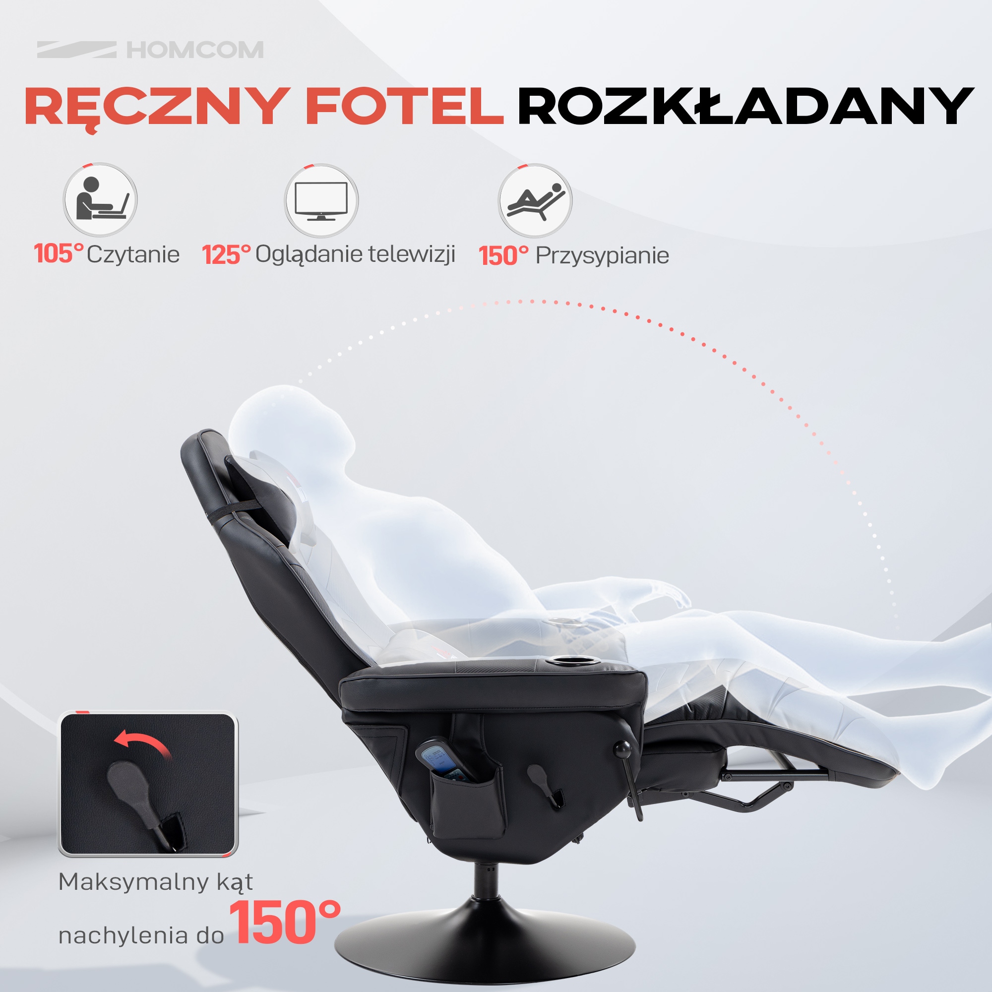 Fotel gamingowy z masażem rozkładany skóra sztuczna czarny super wygodny