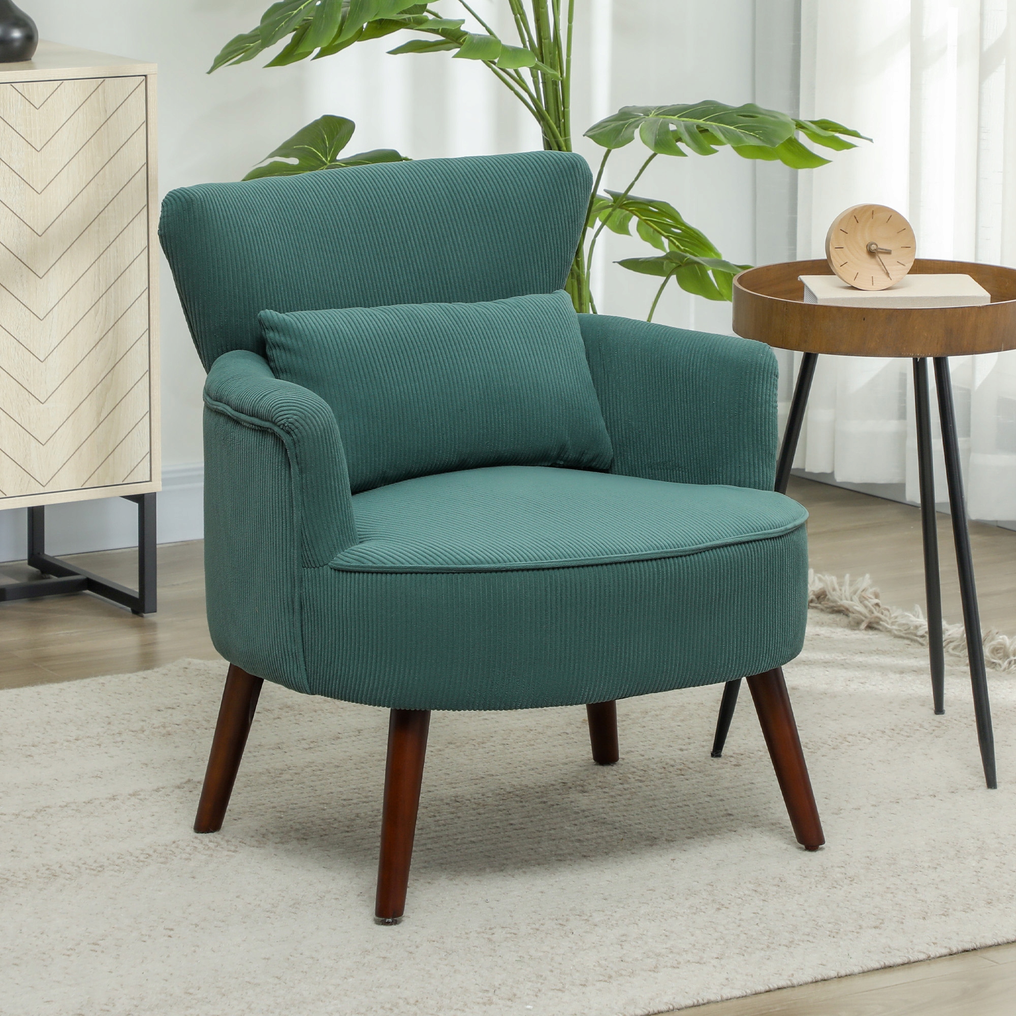 Nowoczesny Fotel z Podłokietnikami, Tapicerowany Fotel Akcentowy z Poduszką Lędźwiową, Nogi z Drewna Kauczukowego, Ciemnozielony
