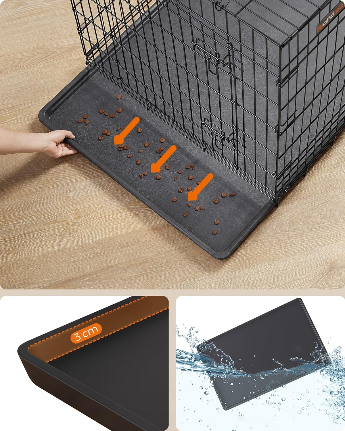 Składana klatka dla psa z 2 drzwiami, wysuwane plastikowe pudełko, 136 x 79 x 87 cm, XXXL, czarna