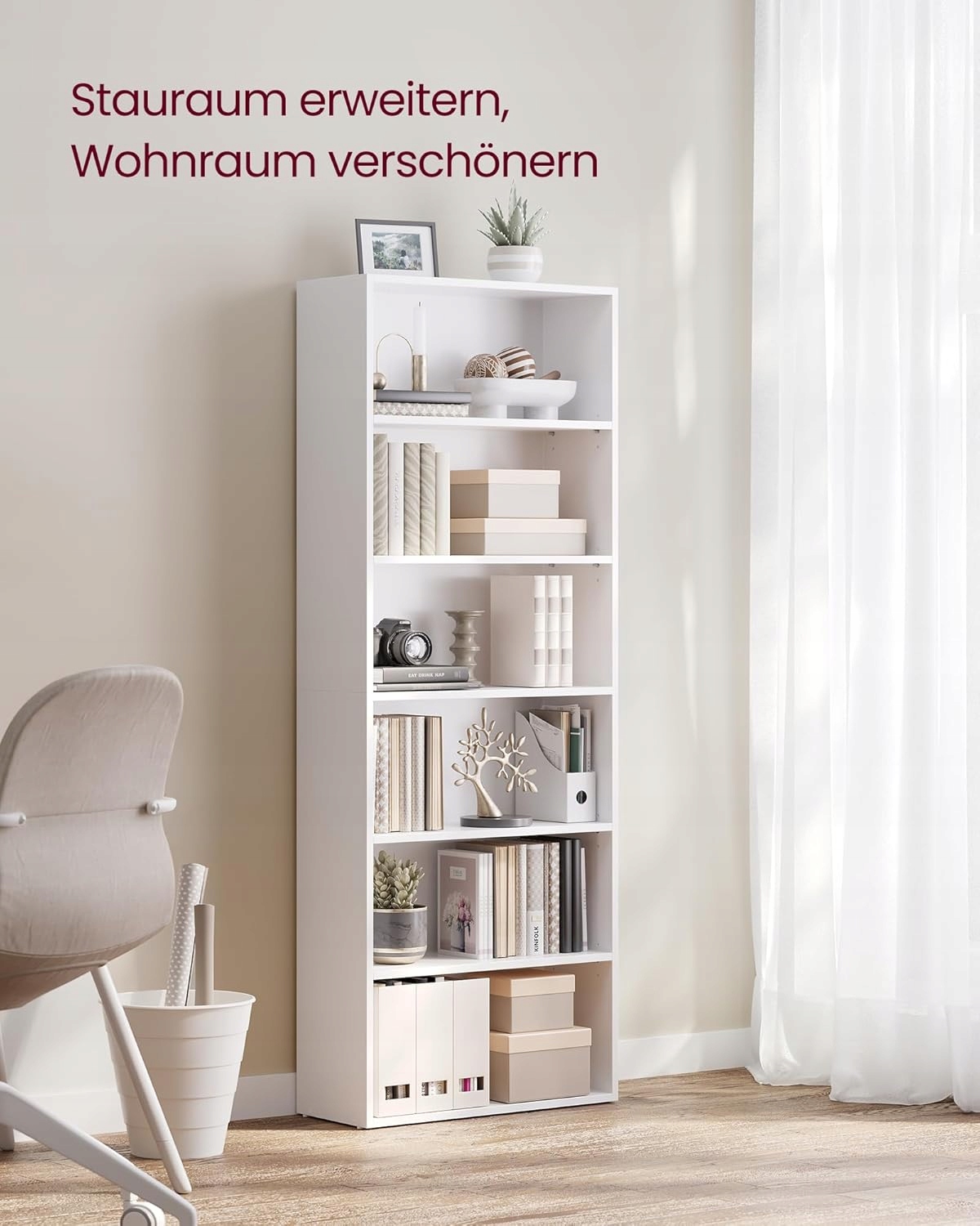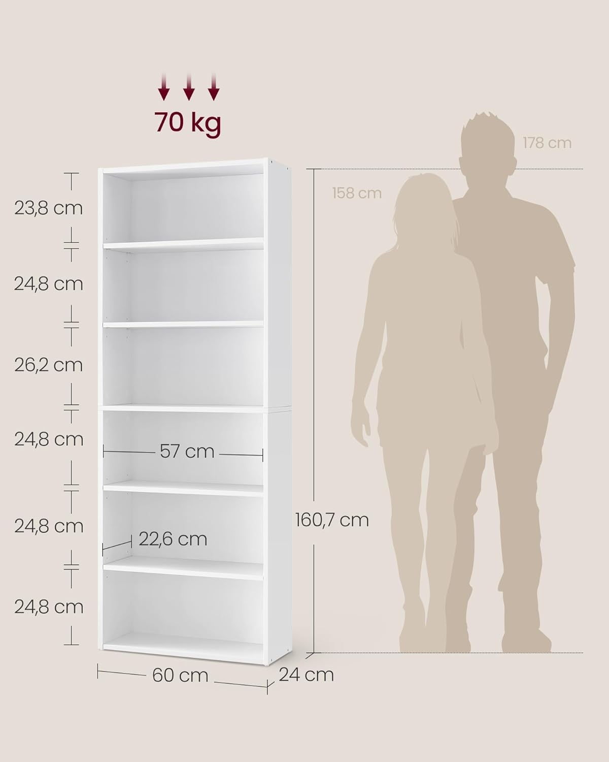 - [Przestronny projekt] Ta 6-poziomowa półka na książki o wymiarach 24 x 60 x 160,7 cm maksymalizuje przestrzeń pionową, dzięki czemu idealnie nadaje się do eksponowania książek i pamiątek w salonie, biurze lub sypialni