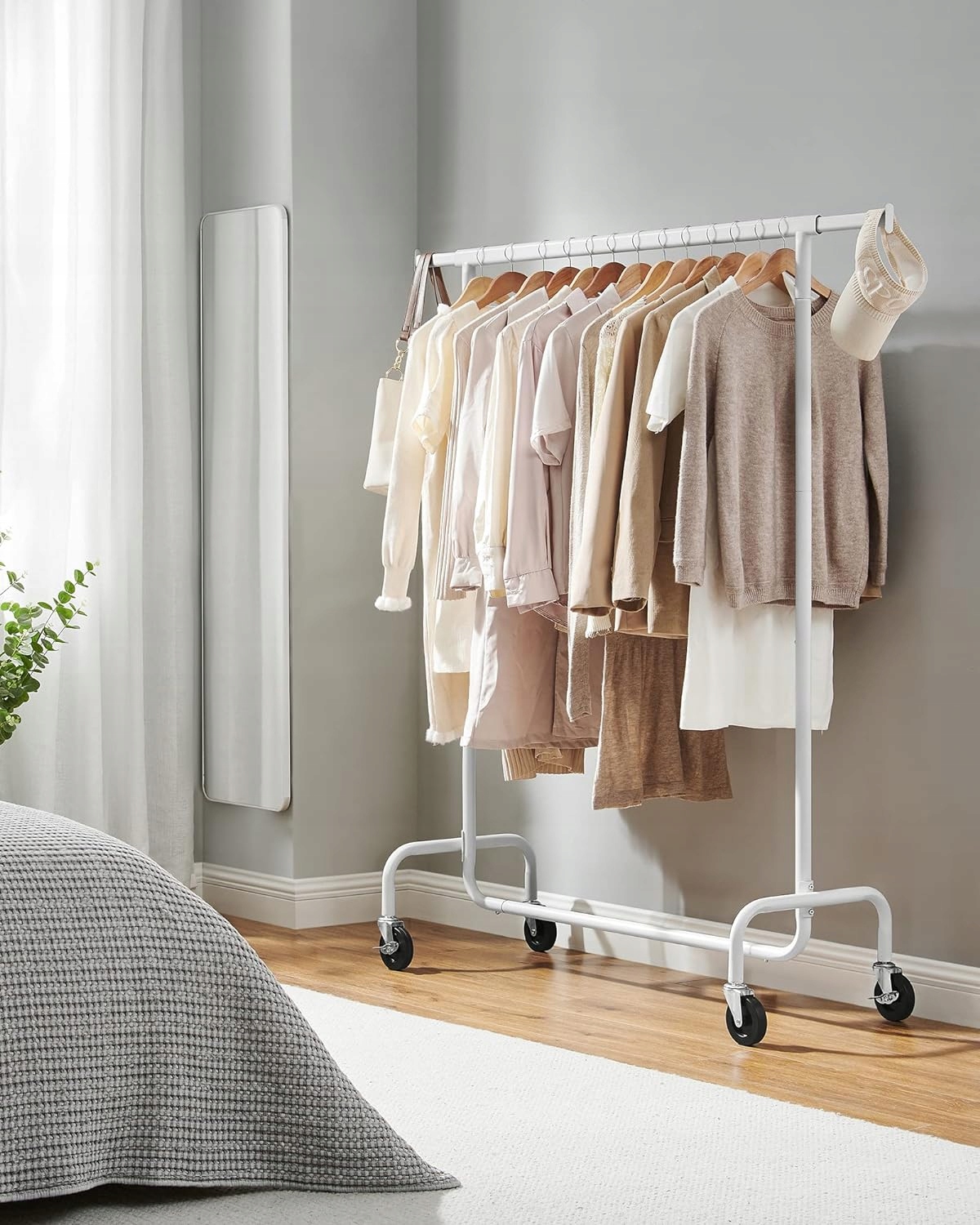 Wieszak na ubrania z kółkami wysuwany drążek do ciężkiego obciążenia